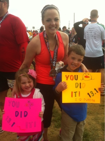 Anyways, that was my 13 point freakin' one in a nut shell! Thank you to Corey for sticking by my side, and Lauren for being my partner (let's not do anything that stupid again), to my parents for keeping the kiddos and making signs and shirts!, to Addie for the "after race package" that consisted of candy, a pedicure gift card and a Starbucks gift card and to all my friends and family for encouraging me with emails, texts, and words. Y'all rock my face off!